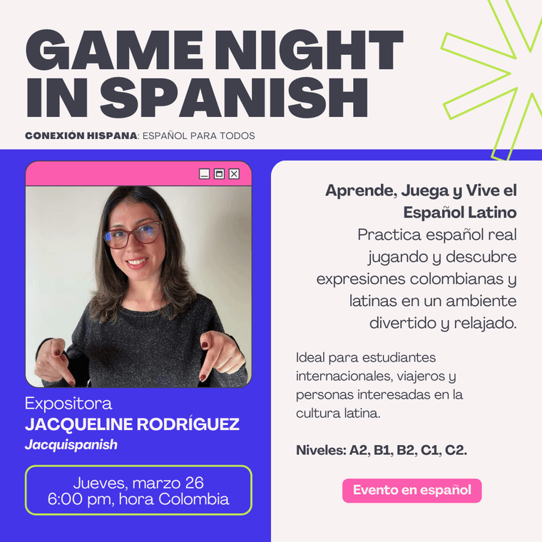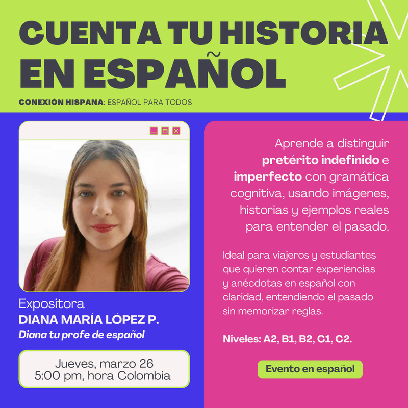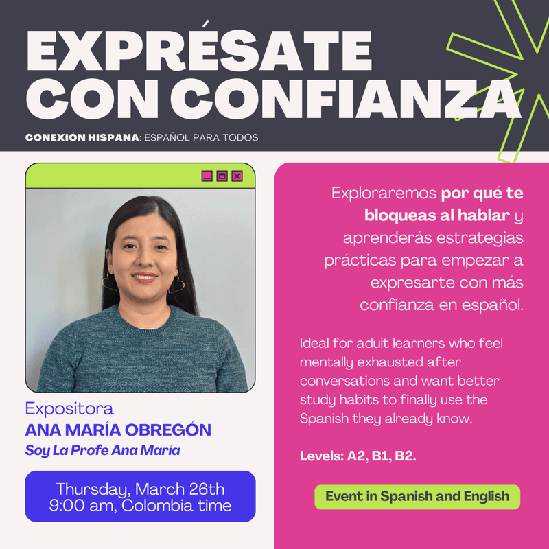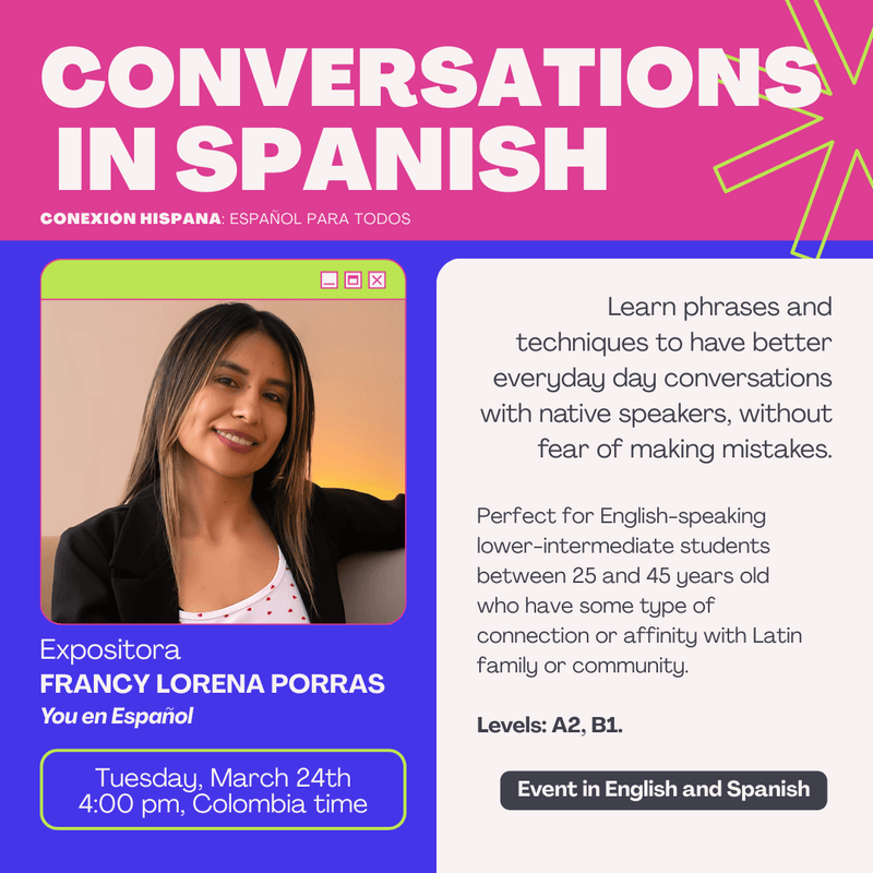If you are learning Spanish, this event is for you. And if you know someone who loves Spanish or wants to start learning it, share this fair with them. Invite friends, family, colleagues, or classmates. Spanish is a language meant to be shared.