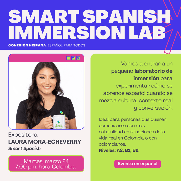 This fair is organized by Smart Spanish and its founder Laura Mora, with the goal of connecting students with passionate teachers and creating a more human, dynamic, and cultural language learning experience.